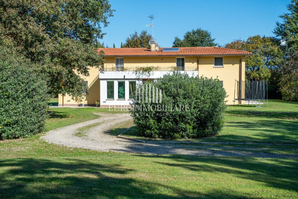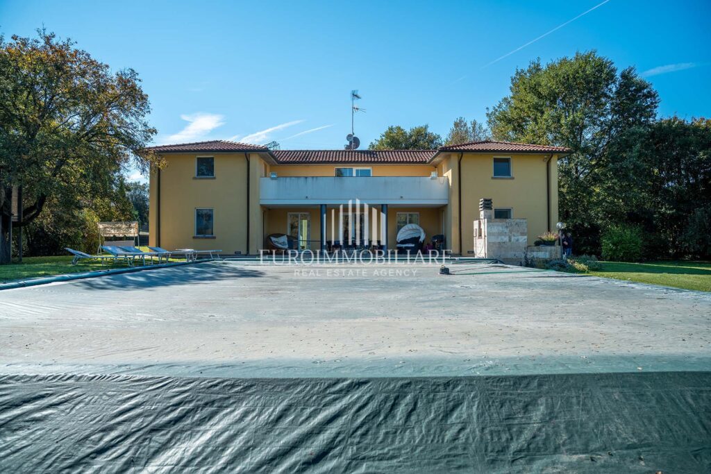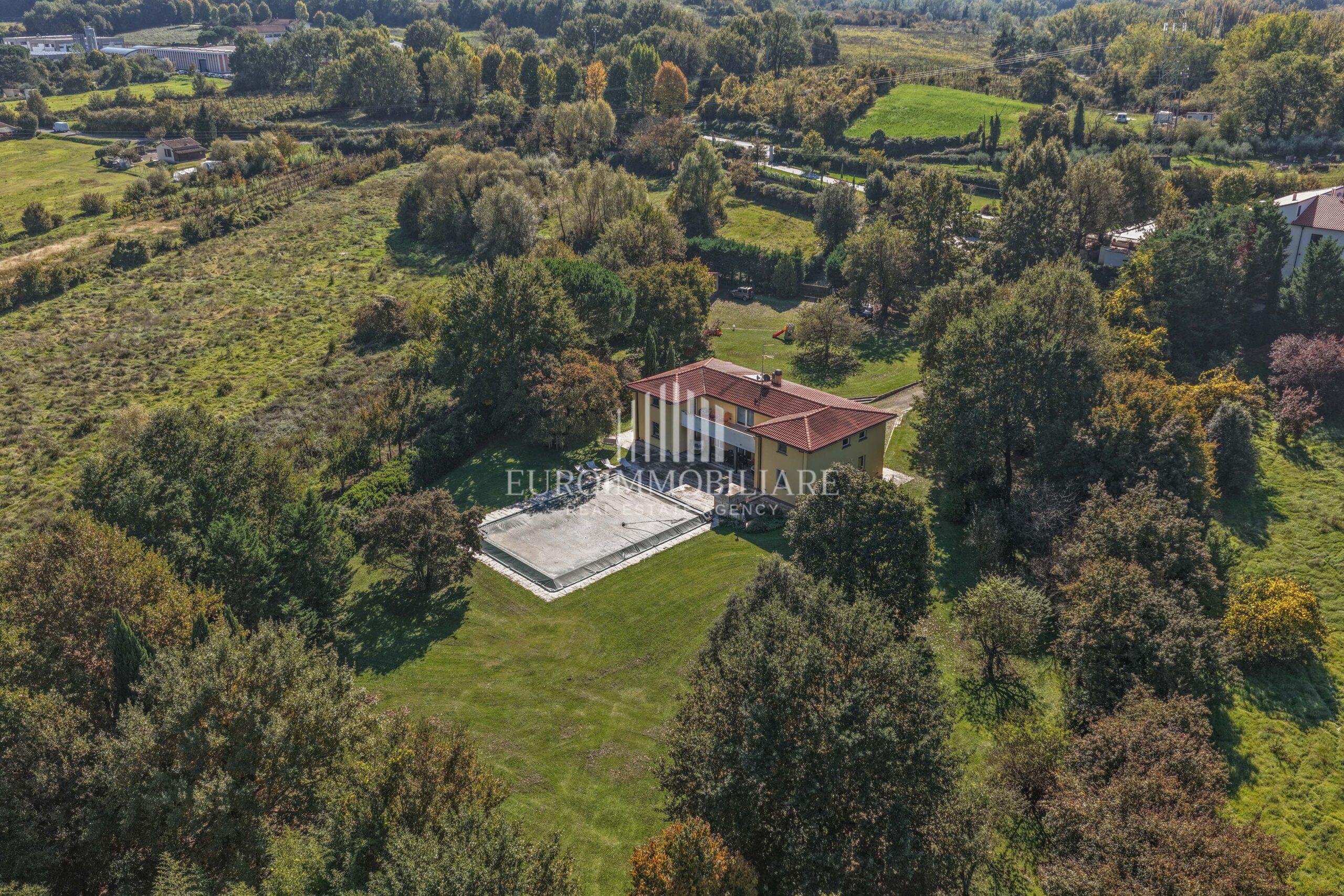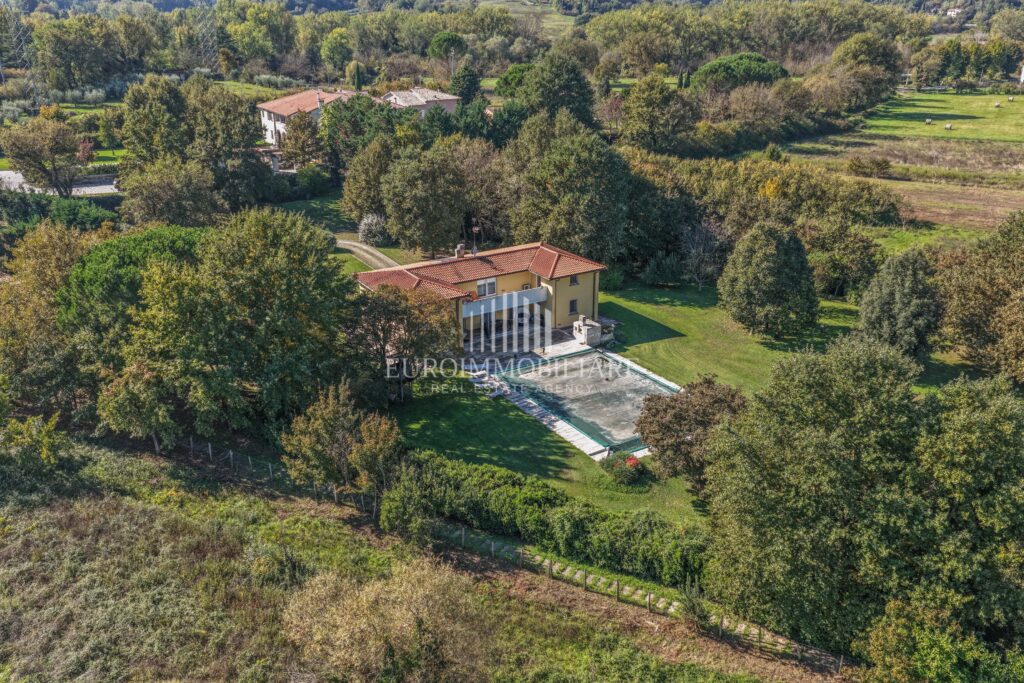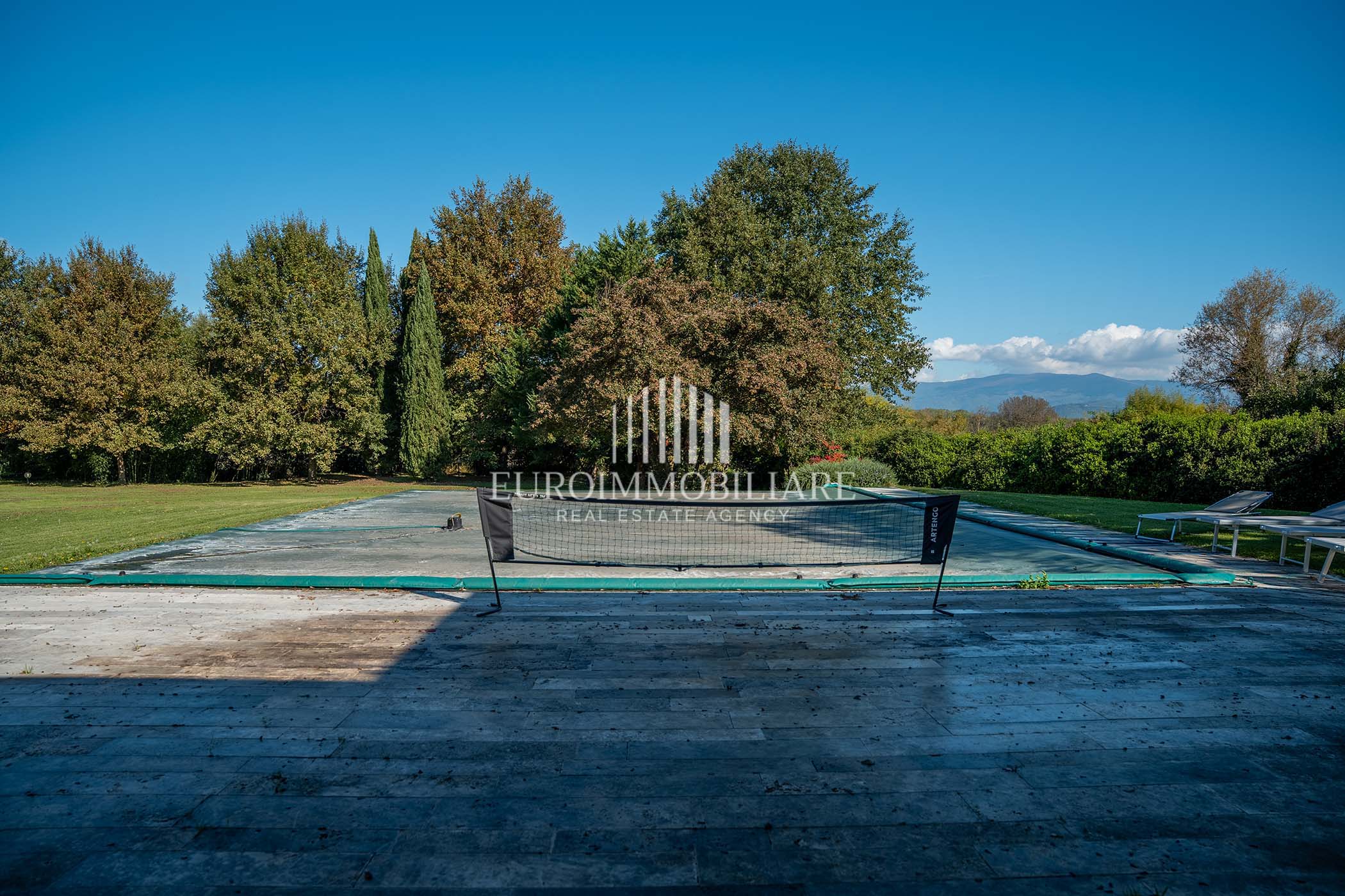 Villa di prestigio situata nella raffinata cornice di Quarata, alle porte di Arezzo, immersa nel fascino autentico delle terre toscane. Gli spazi interni sono eleganti, luminosi e curati nel dettaglio: al piano terra si sviluppano la zona living con salone, sala da pranzo e cucina, oltre a due camere e relativi servizi. Il piano superiore accoglie la zona notte principale, organizzata in ambienti distinti e concepiti per garantire privacy e massimo comfort, con camere dotate di bagno privato, guardaroba e ambienti dedicati al wellness, oltre a una grande terrazza panoramica affacciata sulla piscina e collegata al porticato.