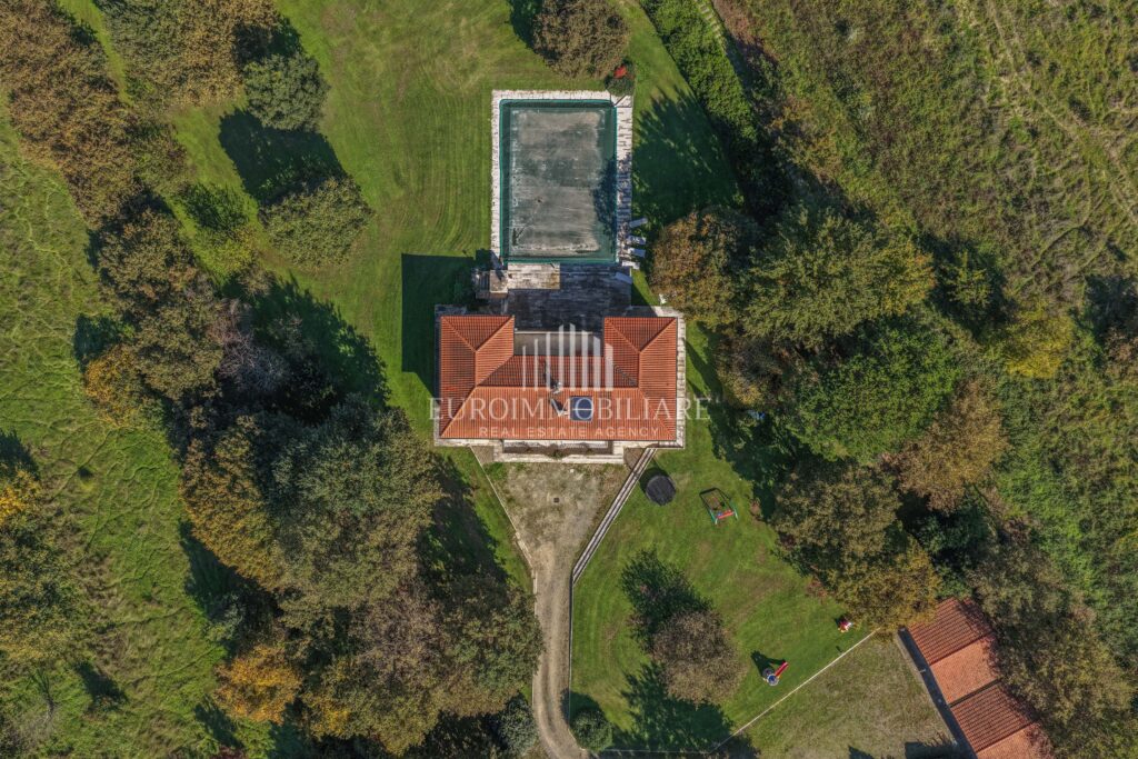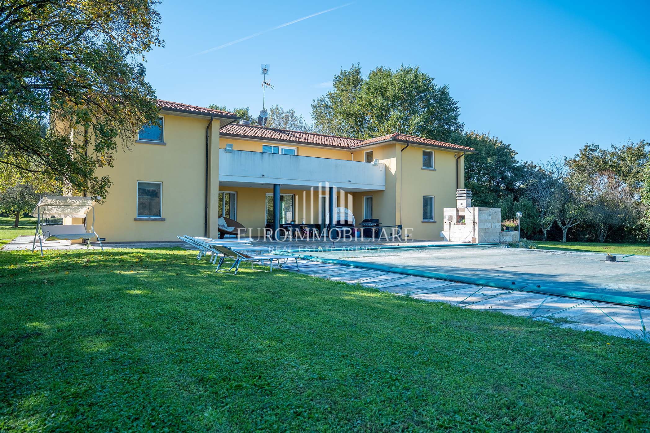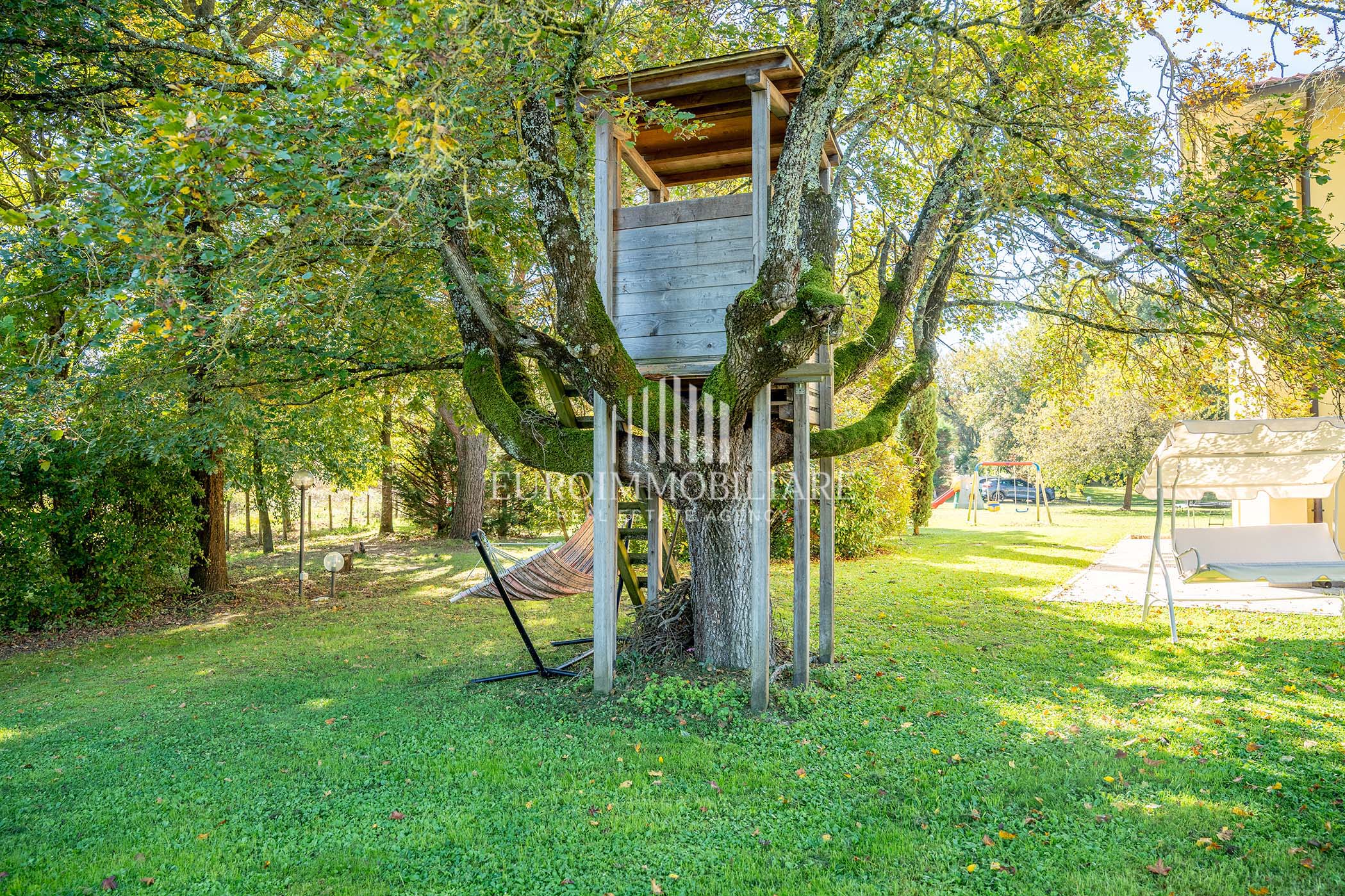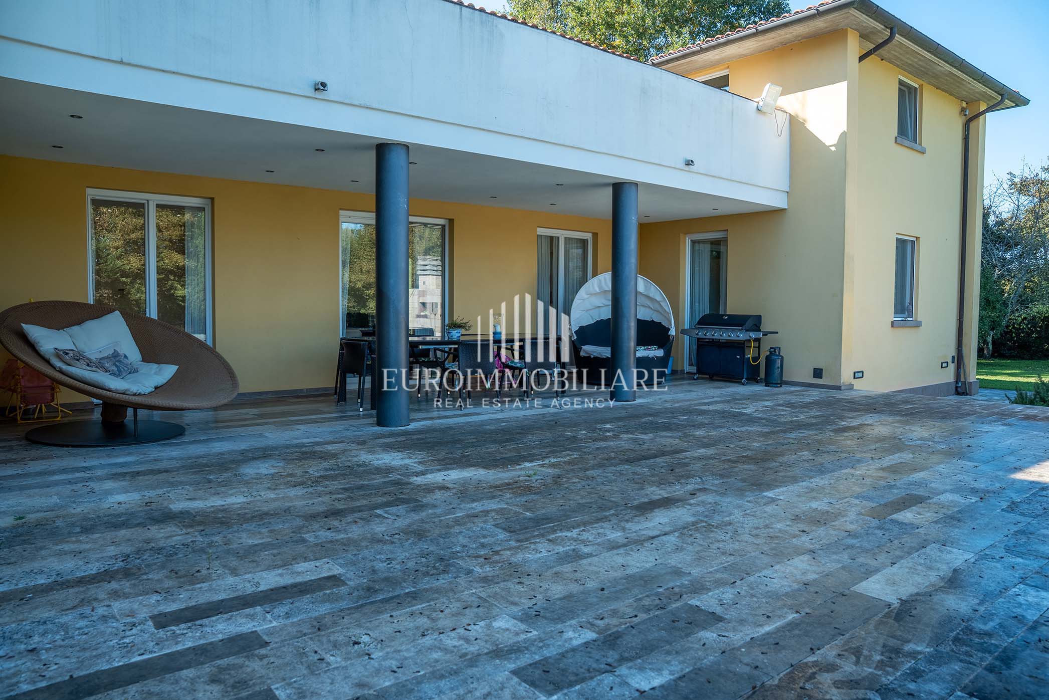 Villa di prestigio situata nella raffinata cornice di Quarata, alle porte di Arezzo, immersa nel fascino autentico delle terre toscane. Gli spazi interni sono eleganti, luminosi e curati nel dettaglio: al piano terra si sviluppano la zona living con salone, sala da pranzo e cucina, oltre a due camere e relativi servizi. Il piano superiore accoglie la zona notte principale, organizzata in ambienti distinti e concepiti per garantire privacy e massimo comfort, con camere dotate di bagno privato, guardaroba e ambienti dedicati al wellness, oltre a una grande terrazza panoramica affacciata sulla piscina e collegata al porticato.
