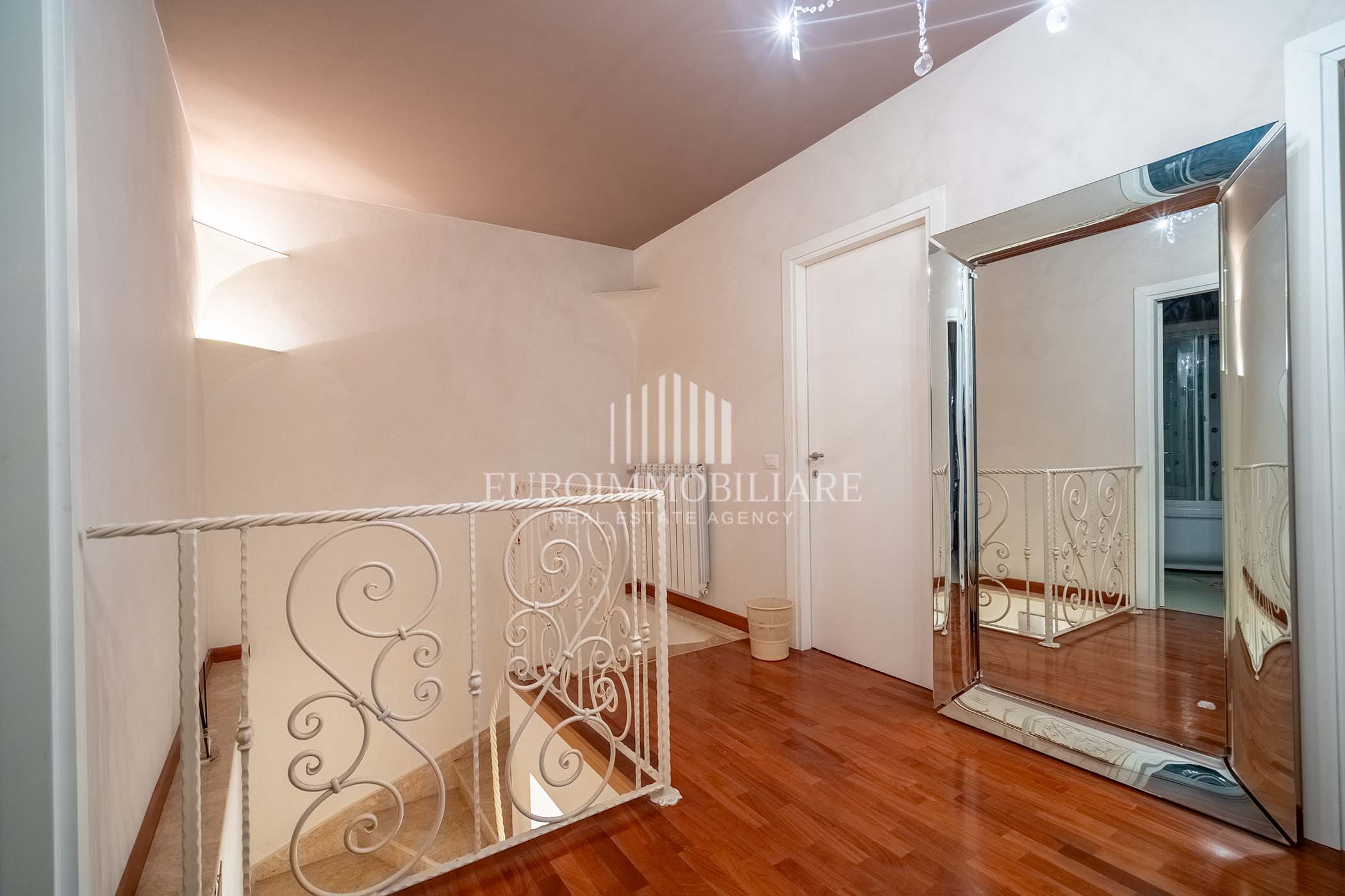 Salendo al primo piano, tramite una elegante scala in travertino, si accede alla zona notte composta da quattro camere da letto, di cui una con loggia e bagno en suite. Completano il piano un secondo bagno e un grande terrazzo dove rilassarsi.